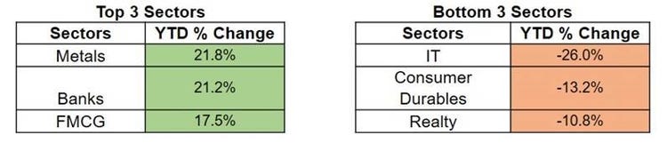 During the first six months, Nifty50 lost 9.1% but then began to show significant signs of recovery, rising 14.7% in the other half of the year. The year was a tale of two halves, as in the first half, large caps did well, falling lesser than the mid and small caps. While in the second half, the latter led the recovery.