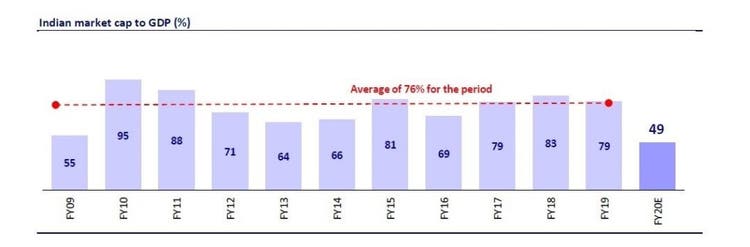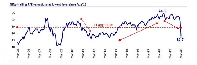 As the spread of the virus started to build, global markets started to correct violently with almost all major global indices correcting in the range of 35-40%. Indian markets too corrected very sharply and rather quickly with continuous selling from FIIs on a daily basis to the extent of 3000-4000 cr. All kind of companies including bluest of blue chips fell down anywhere in range of 25%-50%. Indian market cap to GDP went down from 70% to 55% (right now 49% source MOFSL) and Nifty valuations (P/E) corrected from about 28 times to 17 times. Trillions of dollars of wealth (world market cap is down ~20tn USD) has been eroded globally so far and any bottoming out of the markets is becoming very difficult to predict. It is quite likely that till such time news around any positive developments emerge on further spread of COVID 19, the markets will remain extremely volatile and could swing 5-10% either side on daily basis.