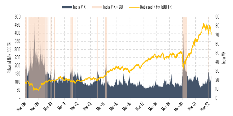 Financial markets around the world have had a rough start in 2022. Equity indices are tumbling from all-time highs and bond yields continue to trend upwards. Central Banks have begun raising rates and are tightening the supply of “easy money” to combat the woes of rampant inflation. The Russia-Ukraine conflict and lock down across major cities in China continue to cause supply-chain disruptions and have only added fuel to the fire. The stock markets in India have seen heightened volatility as well which has made investors uneasy after a tremendous bull run over the last ~2 years.