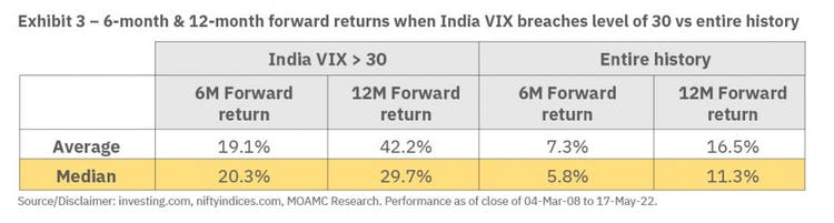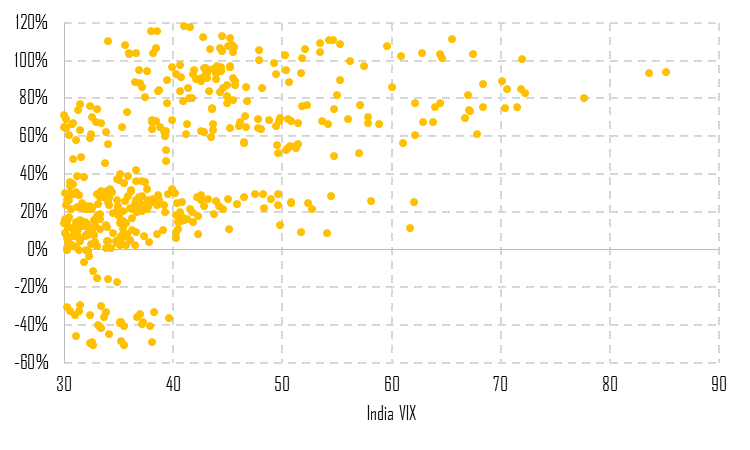Exhibit 2 – 12-month forward returns when India VIX breaches level of 30