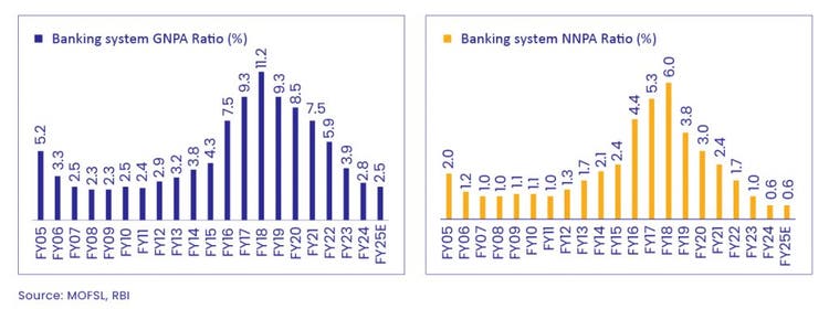 By FY25, GNPAs had dropped to 2.5%, and NNPAs to a mere 0.6%. It was one of the most significant clean-up efforts in emerging markets, and it gave banks a new lease of life.