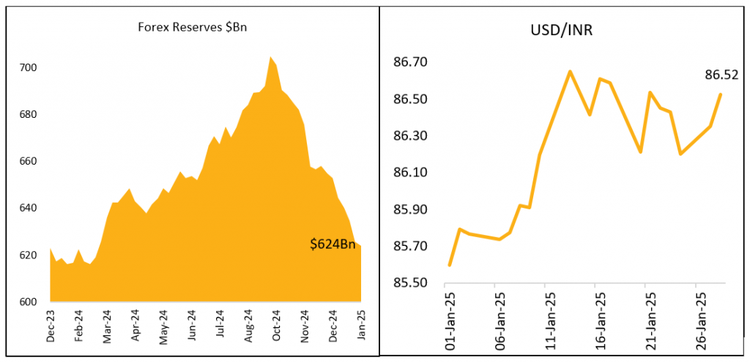 US has levied tariff on Canada and Mexico and has threatened a 100% on BRIC nations if they go forward on their plan for an alternate to USD. Illegal immigrants are being deported and citizenship by birth is being reversed. However, these measures do not impact us in any significant manner. We wait to see if there is a duty action against us which is disproportionate to competing nations for exports.