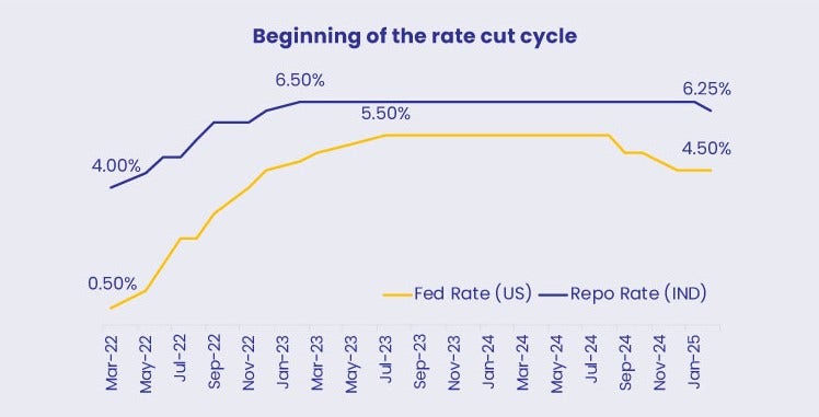 The month of January and first half of Feb has seen a sharp cut in the high earnings growth part of the market. Our understanding of the situation is that the cut was because of currency movement induced sell off, of the performing part of the market in the prior period of Sep to Dec 24. The sharp currency and debt yield movements caused a sharp unwinding of global arbitrage and hedge fund positions which resulted in the selloff. A round of panic, rumours, margin calls etc caused further damage. Threat of US import duties increasing also caused anxiety.