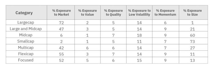 Categories investing across market-capitalization segments like multi-cap, Flexi-cap & focused funds also demonstrated higher exposures to the market & the size factors.