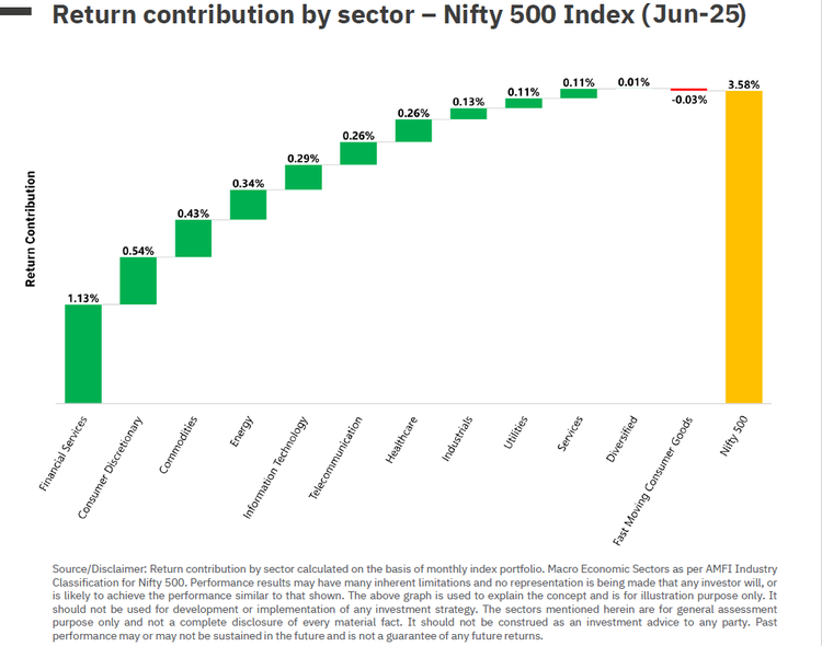- Financial Services, Consumer Discretionary & Commodities were the major contributors to the overall returns of the Nifty 500.