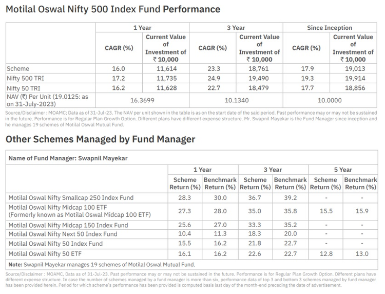 In a market as vast and diverse as the Indian stock market, Motilal Oswal Nifty 500 index fund stands out as one of the potentially powerful investment avenue for investors. It provides broad-based exposure to the Indian stock market, diversification across sectors and companies, and cost-effective investment options. It is hence safe to say that the Nifty 500 and its associated index fund have truly revolutionised the way investors approach the market. Whether you are a seasoned investor or a newcomer looking to dip your toes into the Indian stock market, considering the Nifty 500 index and index fund could be a wise decision.