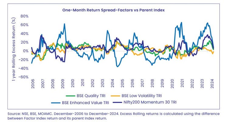 Over a longer term also, the Quality strategy has outperformed its parent index in 72% of the calendar years. This level of consistency highlights the potential benefits of investing in Quality factor, which focuses on financially robust companies with stable earnings and strong fundamentals. On an average, other factor strategies have, outperformed their parent indices only 63% of the time.