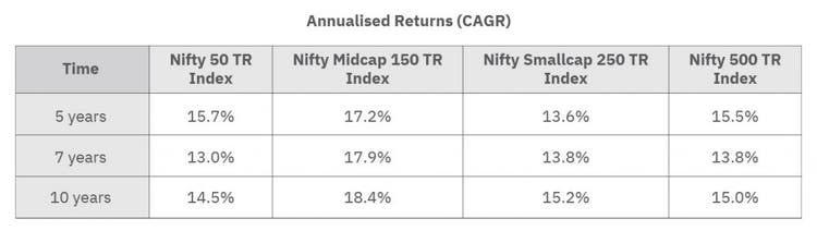 By and large, people set their return expectations by either benchmarking them against their family/friend s performance or looking at their favourite stock return. Many new investors witnessed the Nifty 50 PR Index doubling from March 2020 and making big from the market. But, is it going to be like this forever? Can you expect returns like this in the future? Nobody can foresee the future, but if we look into the history of the Indian stock market, it has never seen such a V-shaped recovery post any crisis. In the long term, Sensex, i.e., India s oldest equity index, delivered a CAGR of 15.4% since inception (Source: BSE India as of 31 July 2021).