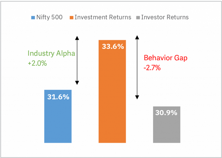 For reference, the behavior gap was -2.7% in 2021 (see Annexure 1 & 2) as investors chased returns and most of the inflows came in when the market had already run-up.