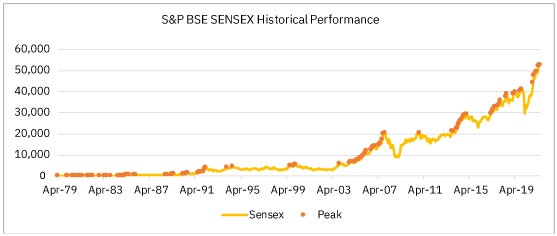 Source/Disclaimer: www.bseindia.com; S&P BSE SENSEX price returns index data in INR. Data as of close of 27-Apr-1979 – 31-Jul-2021